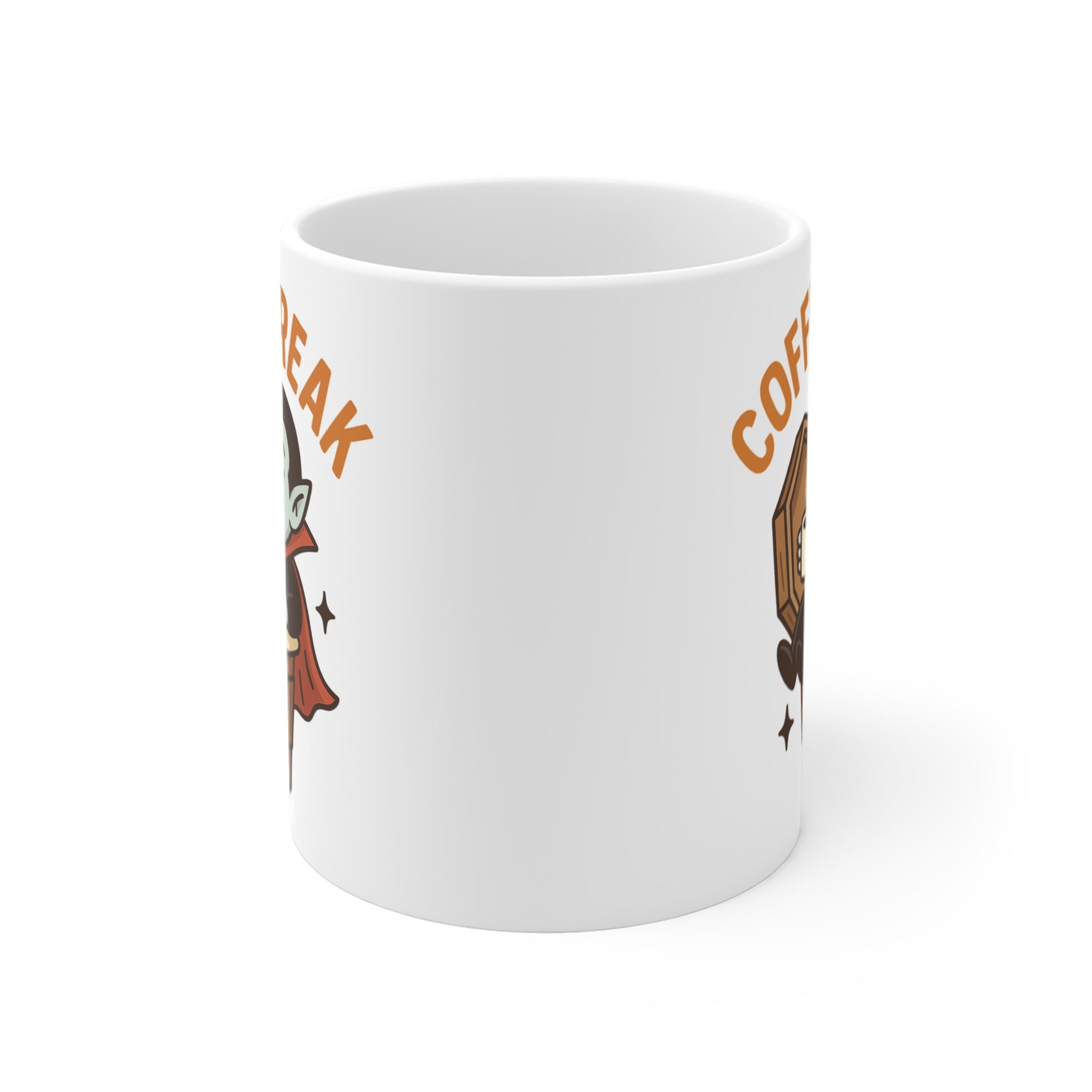 Take your coffee break to the dark side with this 11oz ceramic mug featuring a coffin-inspired design perfect for spooky season.