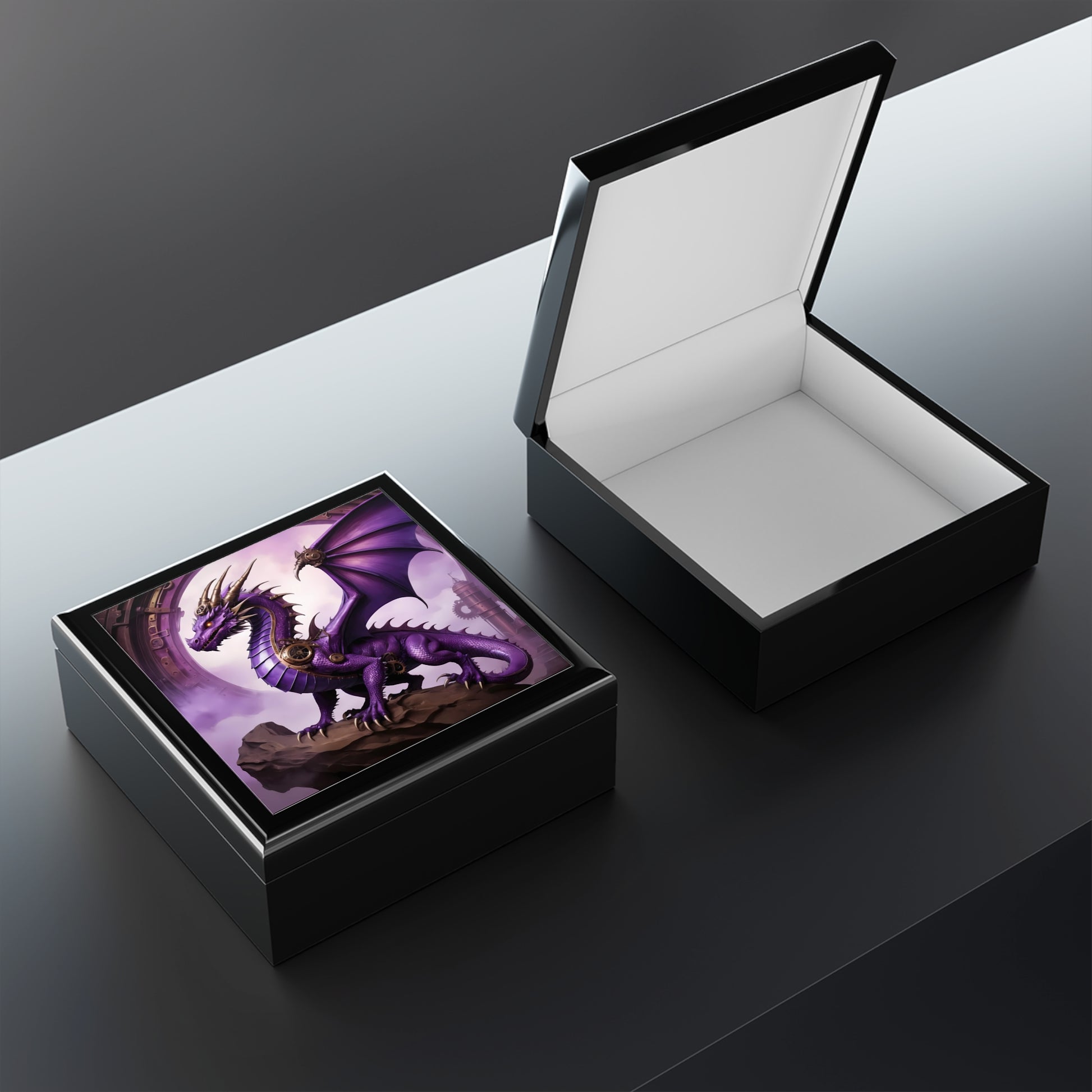 This sturdy wooden jewelry box features Nyxara from the Whispers of the Veilspire collection. Perfect for keepsakes, jewelry, or even dice for your next D&D campaign.